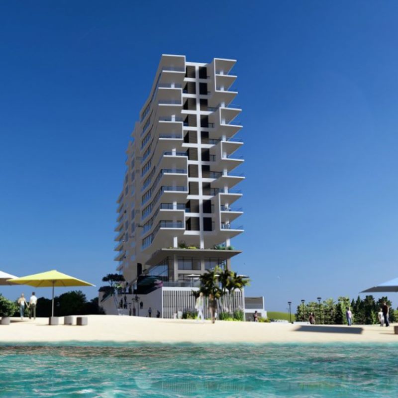 حجم معماری با ترکیب بال‌های زاویه‌دار، از یک سو حس دعوت‌کنندگی و از سوی دیگر گشودگی به سمت دریا را ایجاد می‌کند. این رویکرد علاوه بر حفظ حریم خصوصی واحدها، بهره‌برداری بهینه از منظر طبیعی را ممکن ساخته است.